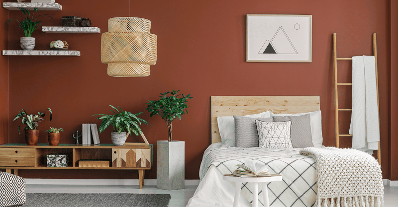 Le rouge brique est une couleur chaleureuse et réconfortante qui apportera une touche d’originalité à votre chambre à coucher. Elle apporte une atmosphère cocooning propices à la détente et au repos. Cette teinte terreuse offre une touche d’élégance et de sophistication à l’espace, tout en créant une ambiance intime et réconfortante. Associée à des tons neutres tels que le blanc, le beige ou le gris, la couleur rouge brique crée un contraste harmonieux qui dynamise la pièce. Elle peut également être utilisée en tant qu’accent pour mettre en valeur des éléments de décoration ou du mobilier. Que vous souhaitiez créer un espace zen et apaisant ou une chambre à la fois chaleureuse et moderne, la couleur rouge brique se révèle être un choix judicieux pour une peinture de chambre à coucher.